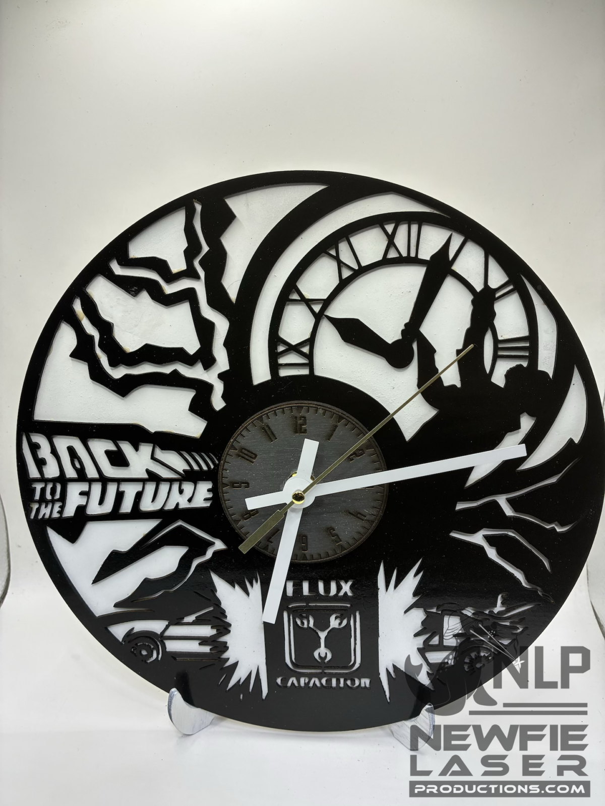 Laser Cutout Layered Back To the Future Clock Processed from pine wood.